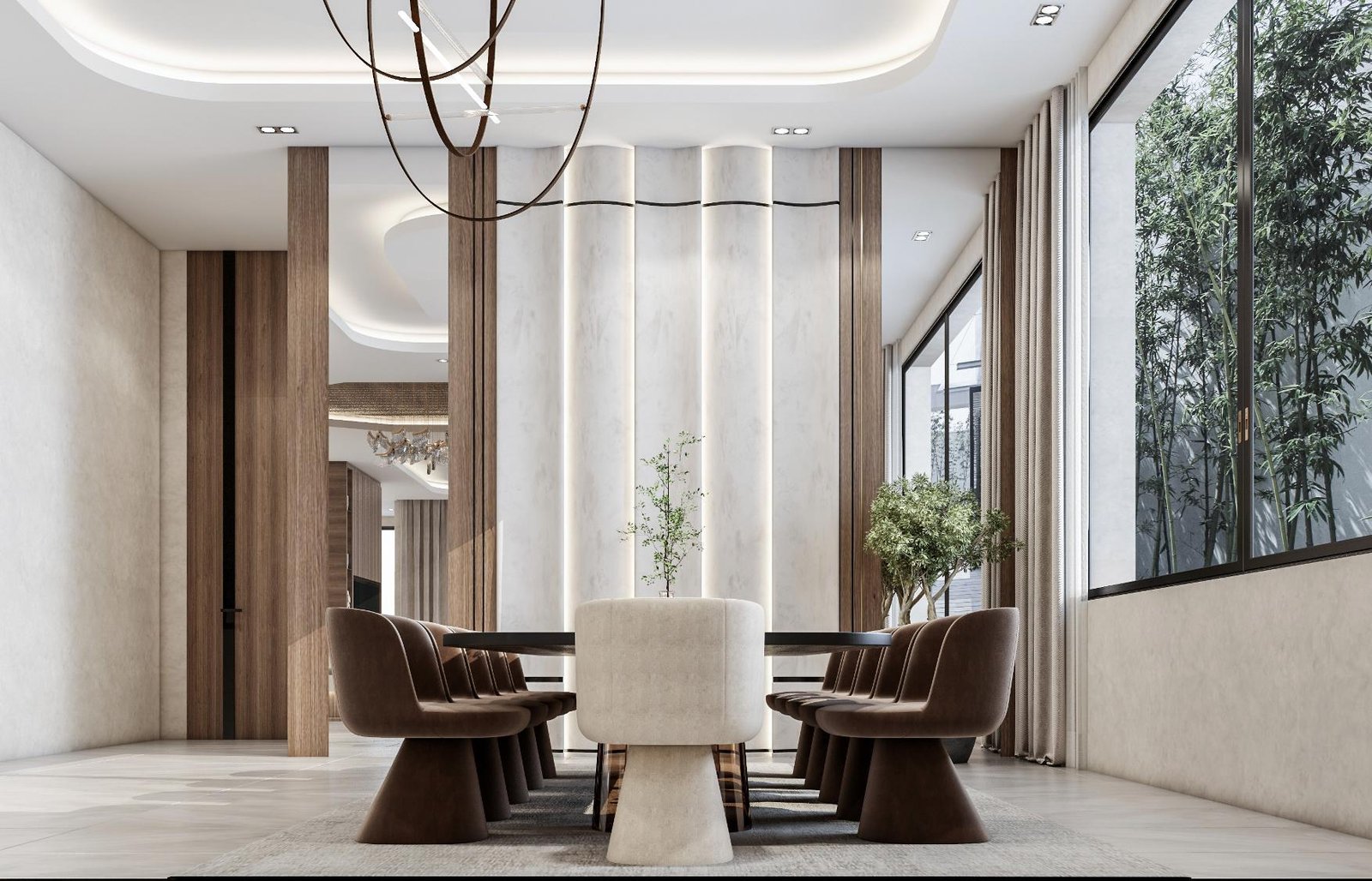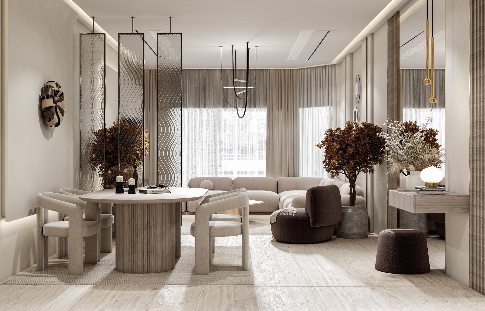 - تنسيق الألوان والخامات بما يعكس الطابع المطلوب (كلاسيكي، مودرن، نيو كلاسيك...).