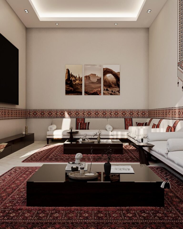 - توزيع الأثاث والإضاءة بطريقة تبرز جمال المساحة.